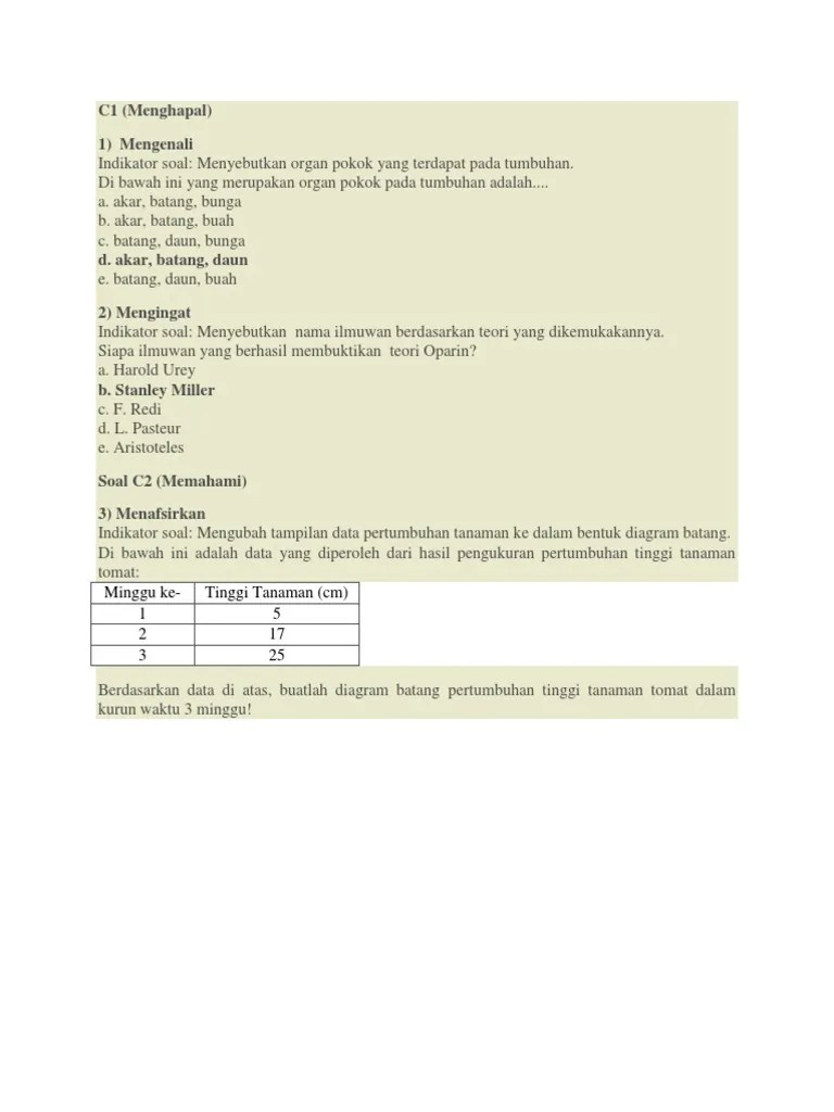 Contoh soal biologi c1 sampai c6.
